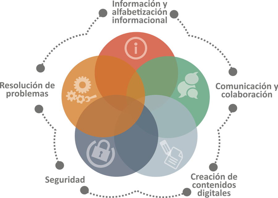 El DigCompEdu es un marco de referencia para una autoevaluación de los docentes por lo que resulta útil a la hora de detectar las necesidades formativas de los docentes, esta formado por cinco áreas competenciales.