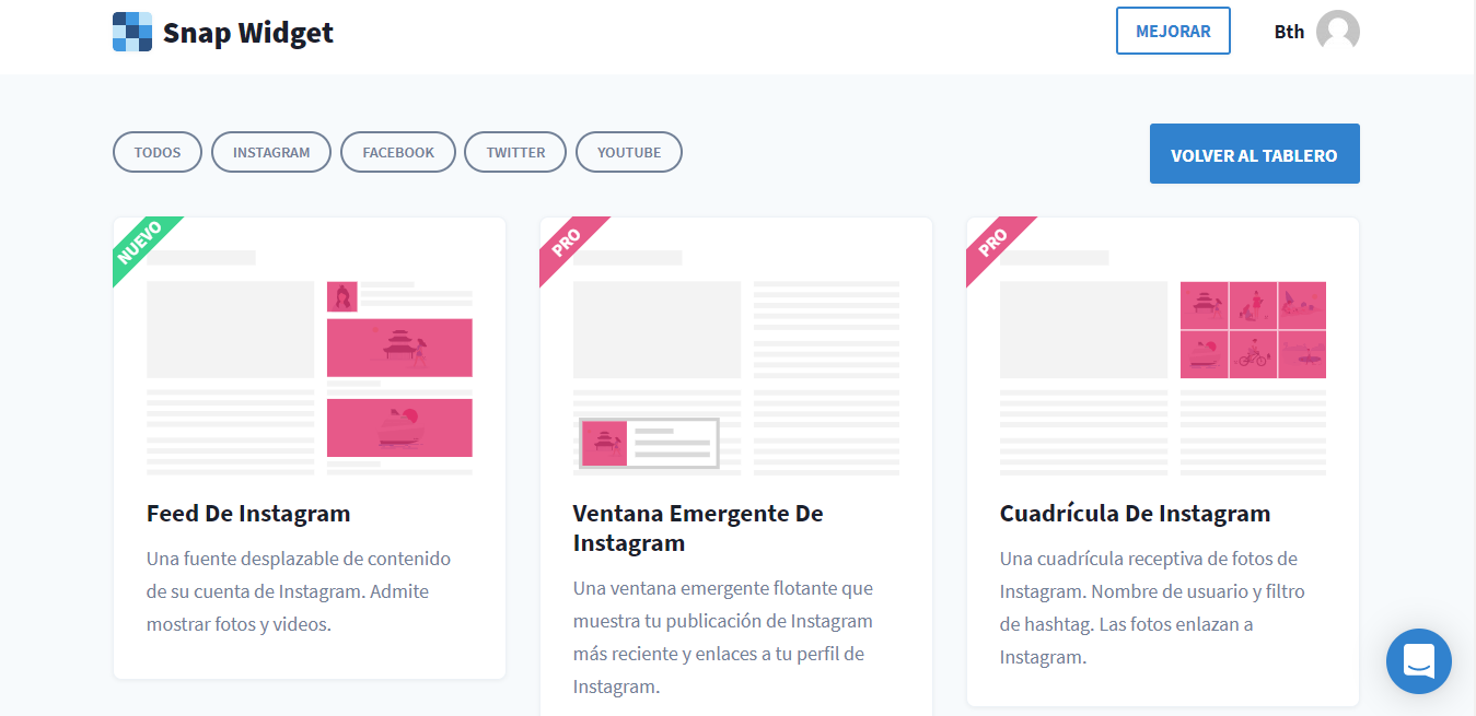 3º una vez dentro te pedirá que elijas entre distintas opciones de como quieres que se vea tu instagram, twitter, etc (lo que hayas seleccionado en la parte superior de la pagina).